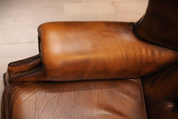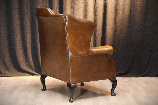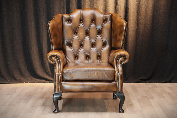 Chesterfield "SPRINGVALE" Ohrensessel der mit echtem Leder bezogen ist. Farbe: Tobacco-Braun. Wie auf den Fotos sichtbar, befindet sich der Sessel noch in einem sehr gutem Zustand. Der