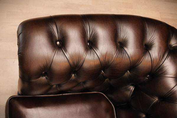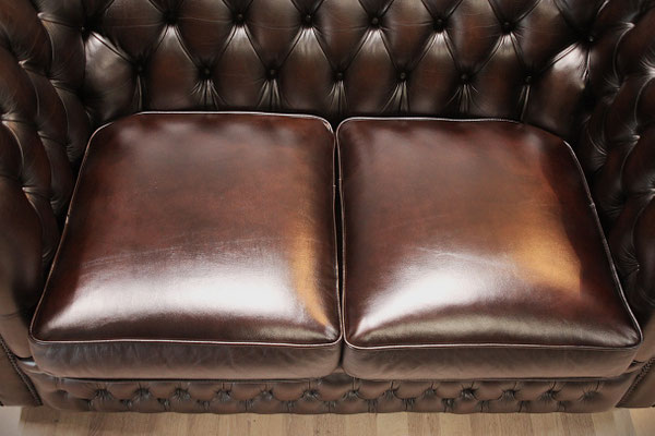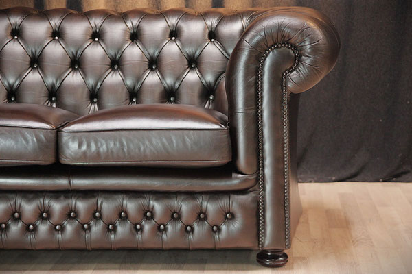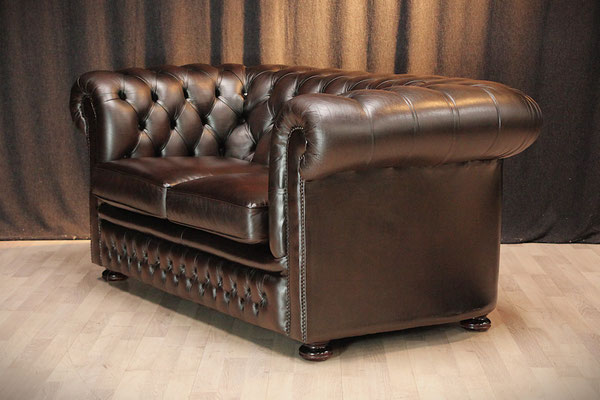 aussehendes Chesterfield 2er Sofa von SPRINGVALE. Farbe - Antik-braun. Das mit echtem Leder (Rindsleder) bezogene Sofa kommt aus einem sauberem Nichtraucher Haushalt und befindet sich noch in