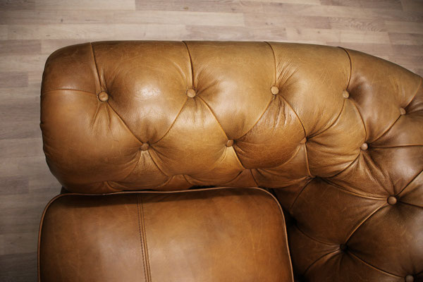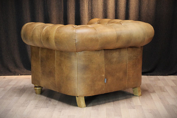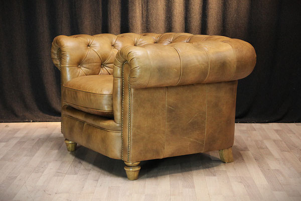 Chesterfield Club-Sessel. Der Sessel ist mit hochwertigem Rindsleder (echtes Naturleder) bezogen, in der Farbe - braun. Dank der guten Pflege des Vorbesitzers befindet sich der Sessel in einem
