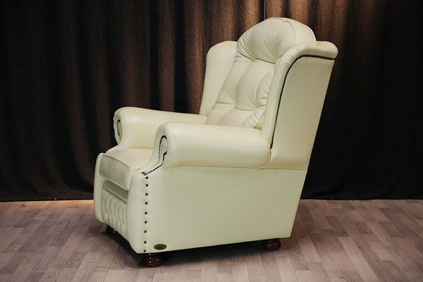 Chesterfield Sessel in Cremeweiß, Modell - Suzanne. Der mit hochwertigem Rindsleder bezogene Sessel kommt aus einem sauberem Nichtraucher Haushalt und befindet sich noch in einem sehr gutem,