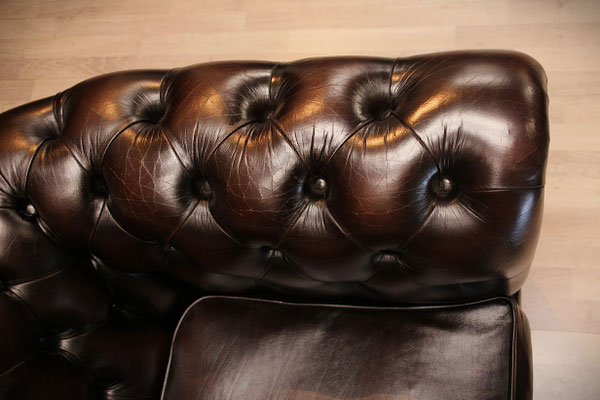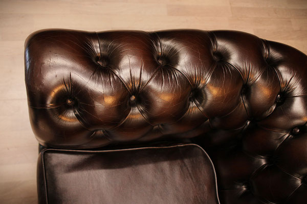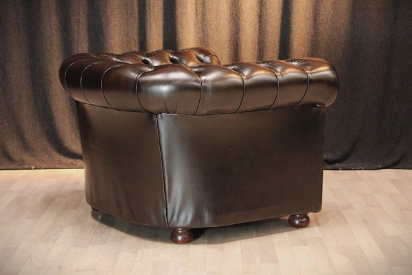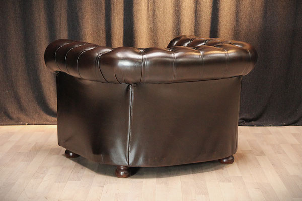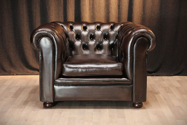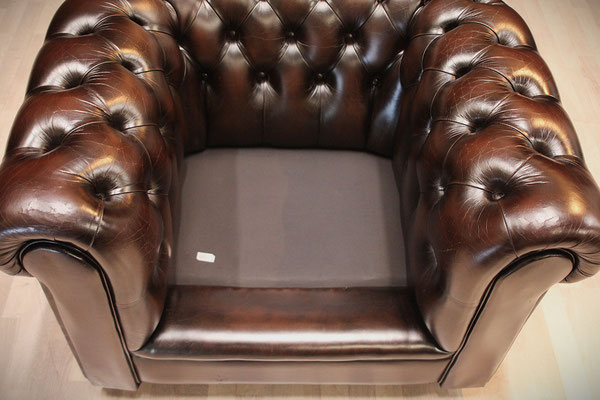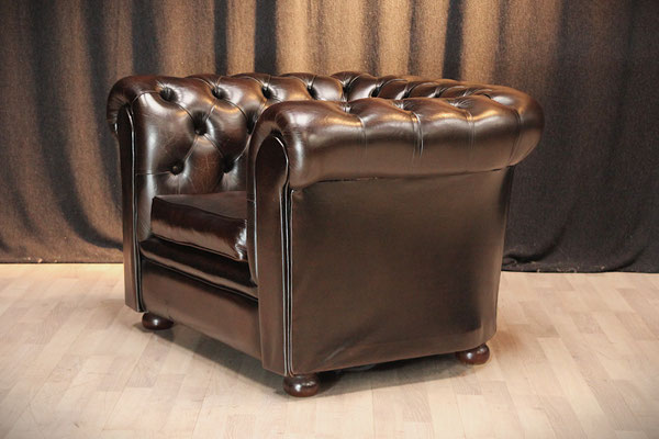 ein original Chesterfield Club-Sessel. Der Sessel ist mit hochwertigem Rindleder bezogen, in der Farbe - braun. Dank der guten Pflege des Vorbesitzers befindet sich der Sessel in einem gutem