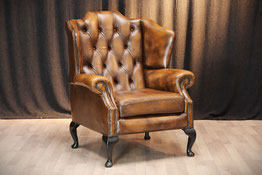 Angeboten wird ein Chesterfield Style Ohrensessel der mit Kalbsleder bezogen ist. Der Sessel kommt aus einem sauberem Nichtraucher Haushalt und befindet sich noch in einem sehr gutem, neuwertigem Zustand. Bei uns hat er noch eine gründliche Reinigung bekommen.
