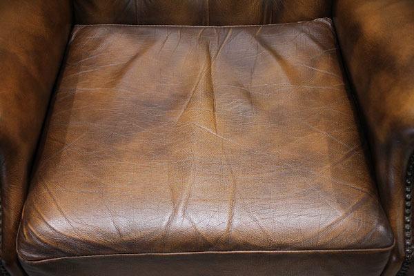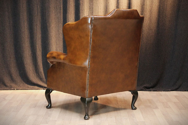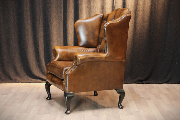 Aangeboden wordt een Engelse Chesterfield "SPRINGVALE" oorfauteuil bekleed met echt leer. Kleur: Tobacco Brown. Zoals te zien op de foto's verkeert de stoel nog in zeer goede staat. De stoel komt uit een schoon, rookvrij huis en is door ons grondig gereinigd.