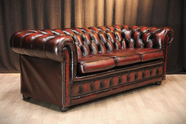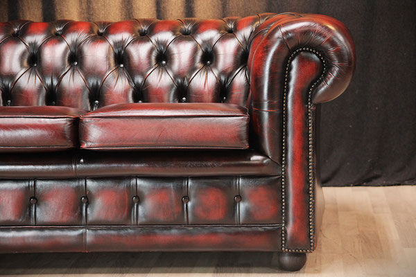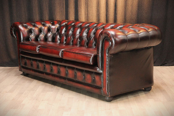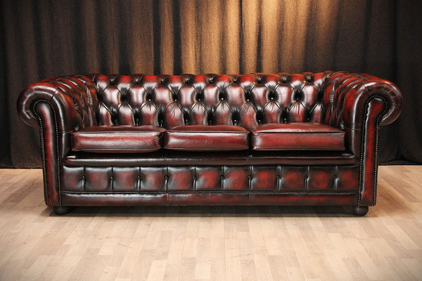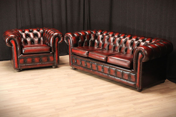 Aangeboden wordt een originele Chesterfield set bestaande uit een 3-zitsbank en een clubfauteuil. Kleur: Oxblood Red. De set komt uit een schoon, rookvrij huis en verkeert nog in zeer goede originele staat. De meubels zijn door ons grondig gereinigd. Gebruikssporen - zie foto's.