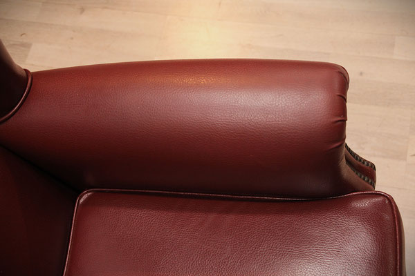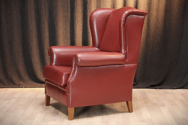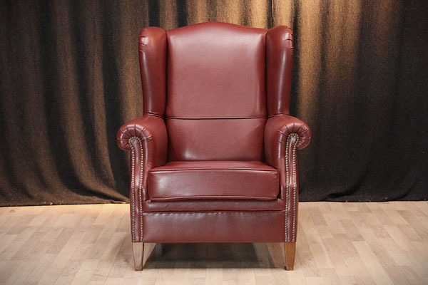 Aangeboden wordt een Chesterfield oorfauteuil bekleed met kunstleer. Desondanks is hij van hoge kwaliteit. Kleur: bruin/roodachtig. Zoals te zien op de foto's, verkeert de stoel nog in zeer goede staat. De stoel komt uit een schoon, rookvrij huis en is door ons grondig gereinigd.