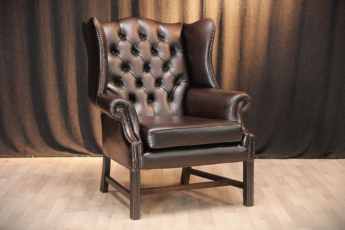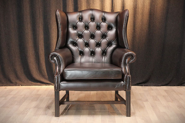Aangeboden wordt een Engelse Chesterfield oorfauteuil bekleed met echt leer. Zoals te zien op de foto's verkeert de stoel nog in goede staat. De stoel komt uit een schoon, rookvrij huis en is door ons grondig gereinigd.