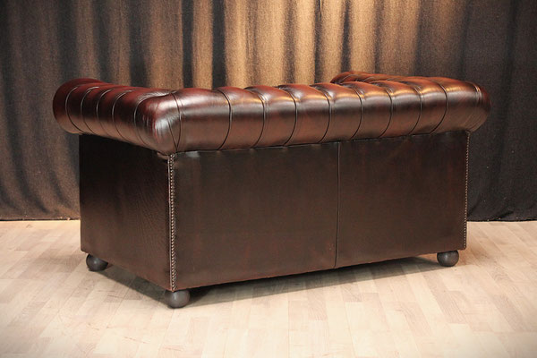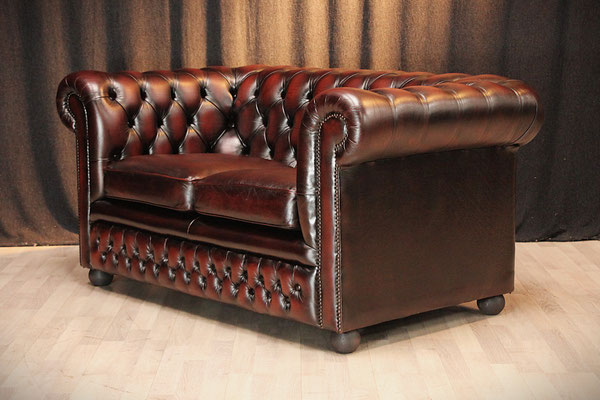 Aangeboden wordt een zeer mooie Chesterfield 2-zitsbank. Kleur: roodbruin. Fabrikant: SPRINGVALE. Deze bank, bekleed met echt rundleer, komt uit een schoon, rookvrij huis en verkeert nog in zeer goede, gebruikte staat. We hebben de bank grondig gereinigd. De zitkussens zijn professioneel opnieuw gestoffeerd.